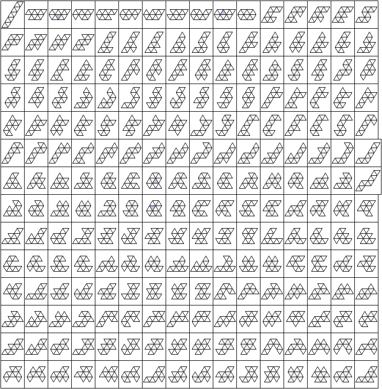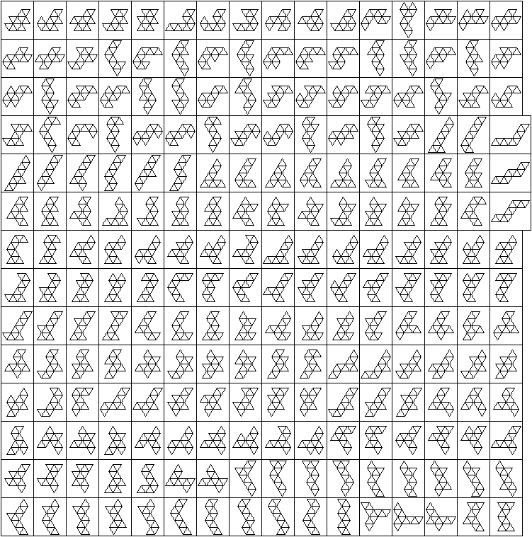 Il y a 448 décaiamonds. En mai 2020, John Greening a rajouté les 448 décaiamonds autour de la fleur : On trouve aussi quelques assemblages de décaiamonds dans les Poypages en bas de page après les octiamonds.