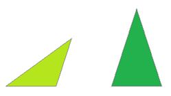 Les formes obtenues par juxtaposition de triangles semblables au triangle bleu clair sont des polyformes appelées polyiamonds.