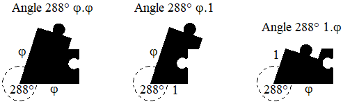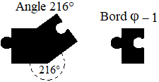Le bord φ - 1 est combiné avec l’angle de 216° de 4 manières différentes pour s’adapter à la figure à entourer :