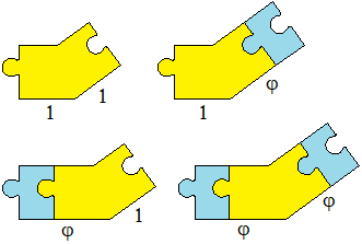 Le bord φ - 1 permet de transformer un bord 1 en bord φ ; ci-dessous ces 3 bords ont été colorés :
