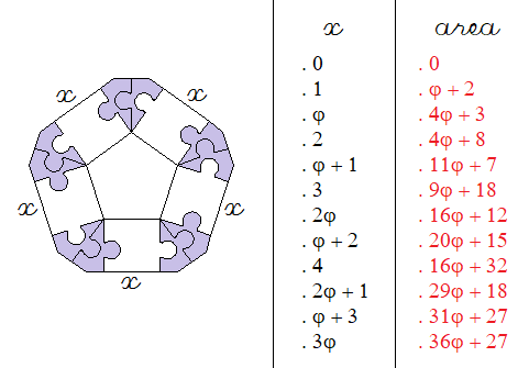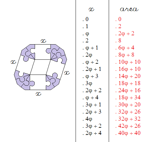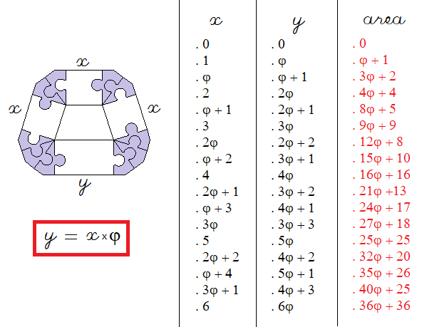Dimensions 1 and φ refer to the dimensions of the triangles which serve as a basis for the polyores ; remember that φ is the golden ratio (about 1.618) :