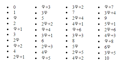 Les côtés des polyores et des formes obtenues à l’aide de polyores ont pour longueurs des nombres de la forme aφ + b où a et b sont des nombres entiers positifs.