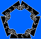 Voici un exemple de clôture pour un pentagone régulier dont les côtés mesurent 2φ + 1 :