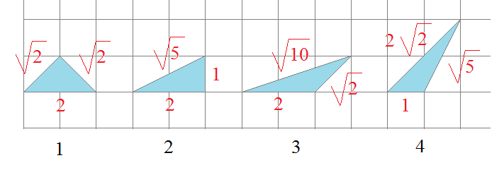 Les triangles ci-dessous ont tous la même aire : c’est l’aire d’un carré du quadrillage.