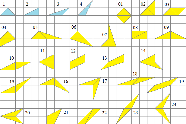 Ils sont les triangles de base des polyrhizes qui sont donc obtenus par juxtaposition de triangles pris parmi ces 4. 2) Les polyrhizes :
